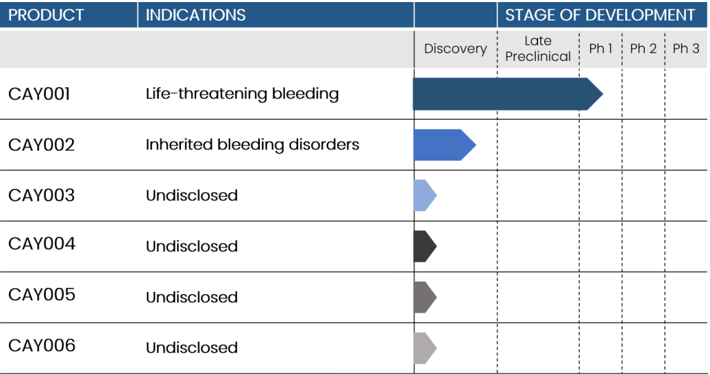 - Discovery-stage CAY002 is a novel composition designed to address unmet needs for patients with inherited bleeding disorders